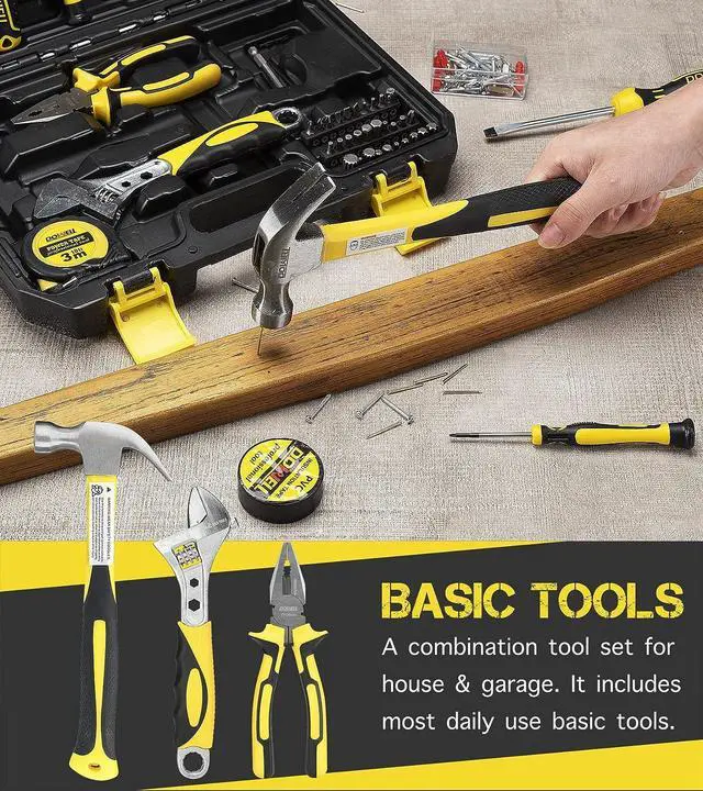 [Multifunctional] This tool kit for the home includes equipment for basic DIY projects including picture hanging, furniture assembly, lighting, screw tightening, woodworking, plumbing repair, and auto repair as well as tools forsmall repairs.