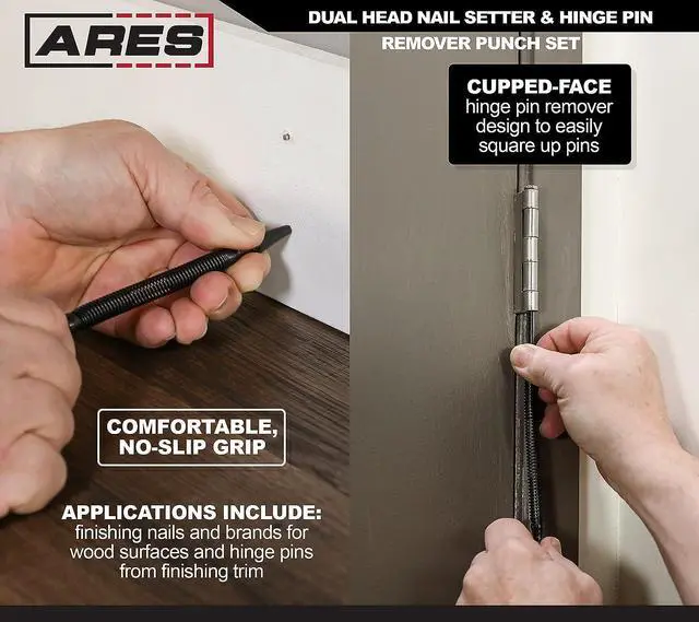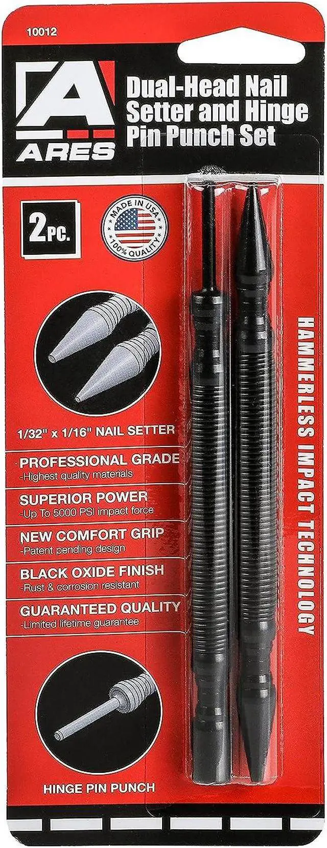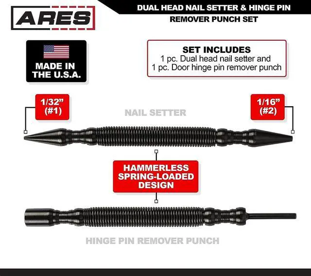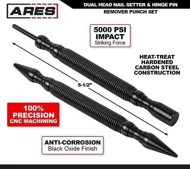 RELIABLE | EFFECTIVE | EFFICIENT: Users trust ARES to be quality tools. You are backed by our Performance Assurance Limited Lifetime Warranty. If you have any issues with your ARES Nail Setter & Hinge Pin Remover, simply contact customer service for troubleshooting help, parts, replacement, or refund.