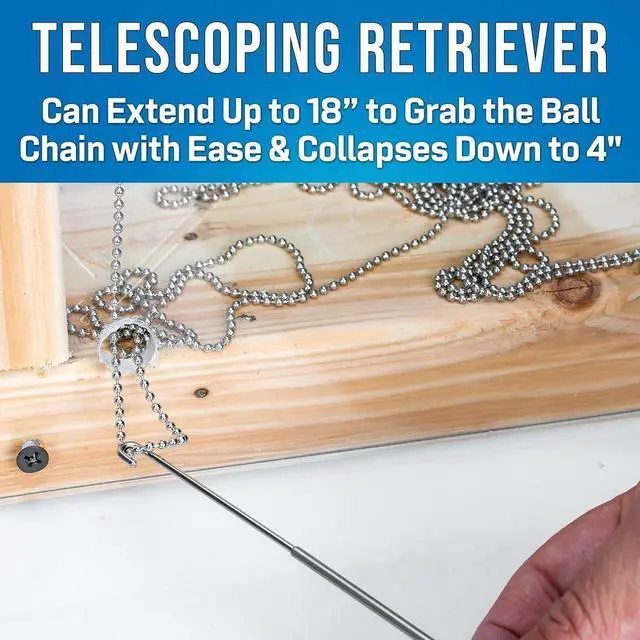 TELESCOPING POCKET RETRIEVER: Can extend up to 18 long to grab the ball chain with ease and collapses down to a mere 4"
