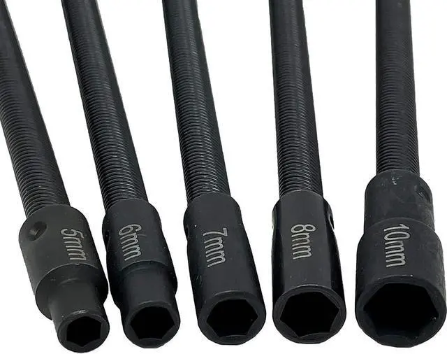 Long flex cable shaft allows access in tight areas to service hose clamps and other fasteners