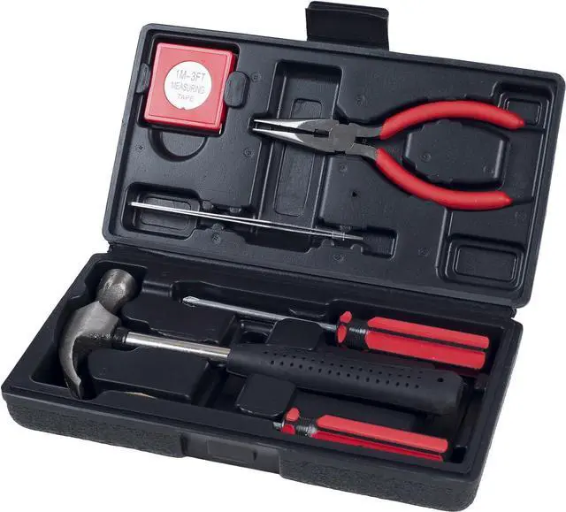 GENERAL USES 6-piece tool set is designed to tackle most assembly, repair projects, or little emergencies around the house or office. Fixing leaky kitchen or bathroom faucets, hanging up pictures, or tightening up a loose screw on your bike, this tool set has everything you will need from hammering, screwing, measuring, and more.