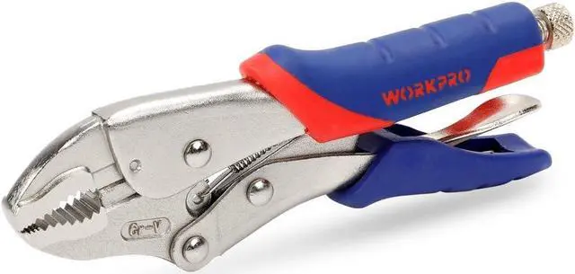 The 4-piece household tool includes 8-in slip joint pliers, 8-in groove joint pliers, 7-in locking pliers, and 8-in adjustable wrench