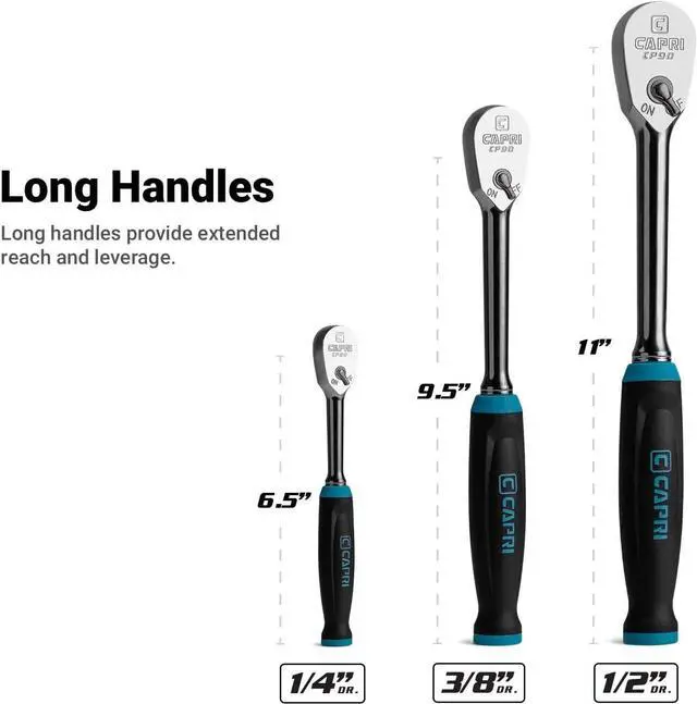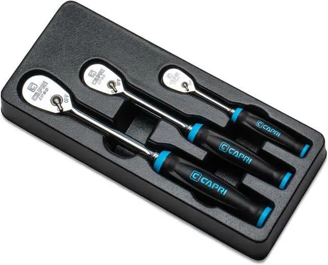 Capri Tools Fine 90-Tooth Ratchet Set, Ergonomic Soft Grip, 1/4, 3/8, 1/2 in. Drive, 3-Piece