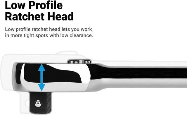 • Low profile ratchet head lets you work in tight spots with low clearance. Long handle provides extended reach and leverage. Anti-dust design seals out dusts and debris, protects the gear, and maintains internal lubrication for sustained high performance over time