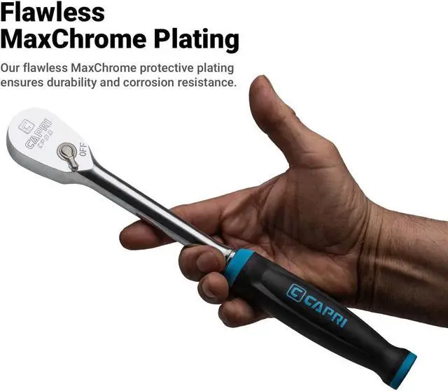 Low profile ratchet head lets you work in tight spots with low clearance. Long handle provides extended reach and leverage. Anti-dust design seals out dusts and debris, protects the gear, and maintains internal lubrication for sustained high performance over time