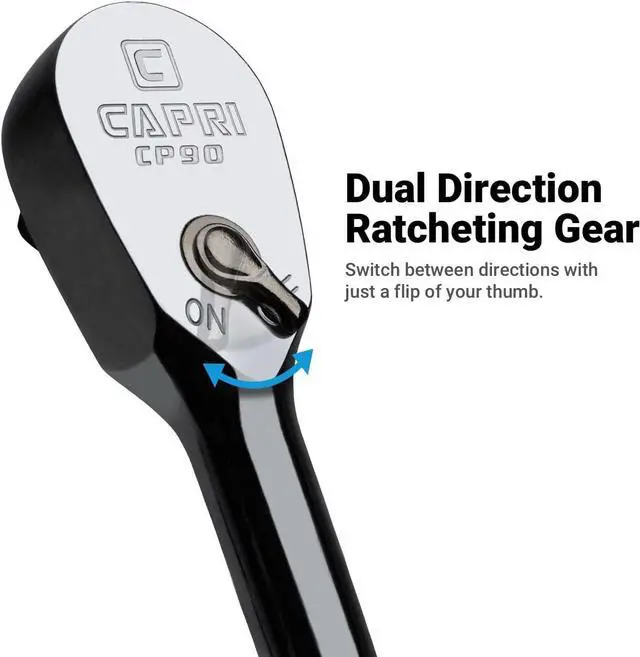 90-tooth fine gear ratchet with just 4 degrees swing arc is essential for working in narrow spots. True single-pawl gear design gives our ratchet an unparalleled smooth ratcheting mechanism