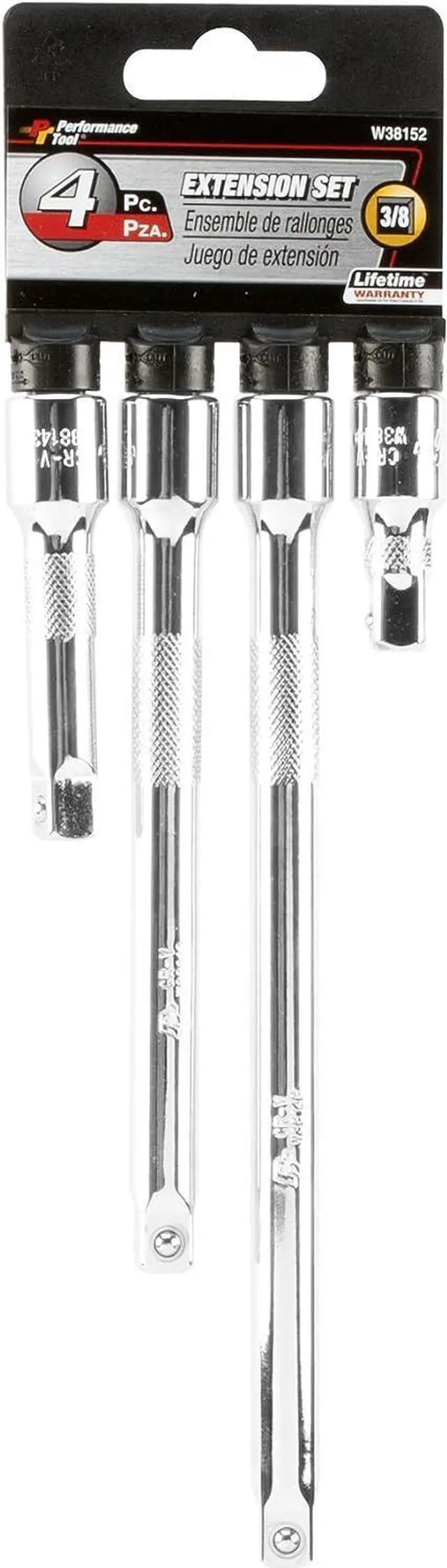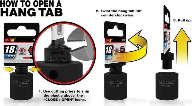 Sizes: 1-3/4", 3", 6" and 8" Polished nickel chrome plated finish resists corrosion Chrome vanadium alloy steel construction for strength and durability To release the sockets you must cut off the tab The packaging is for merchandising purposes only