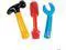 PACKAGE INCLUDES: 3 blue, red, yellow with black vinyl - inflatable bright toy tools - wrench - 9" x 16", screwdriver - 24.5 " and hammer - 14. 5" x 24"