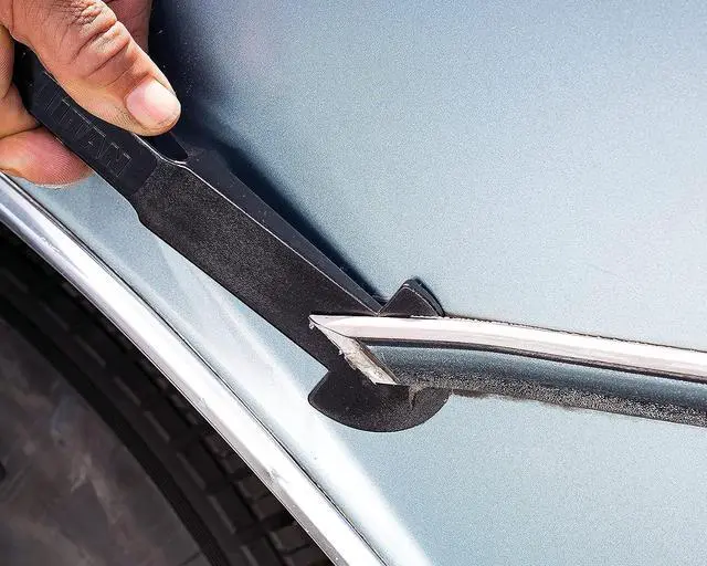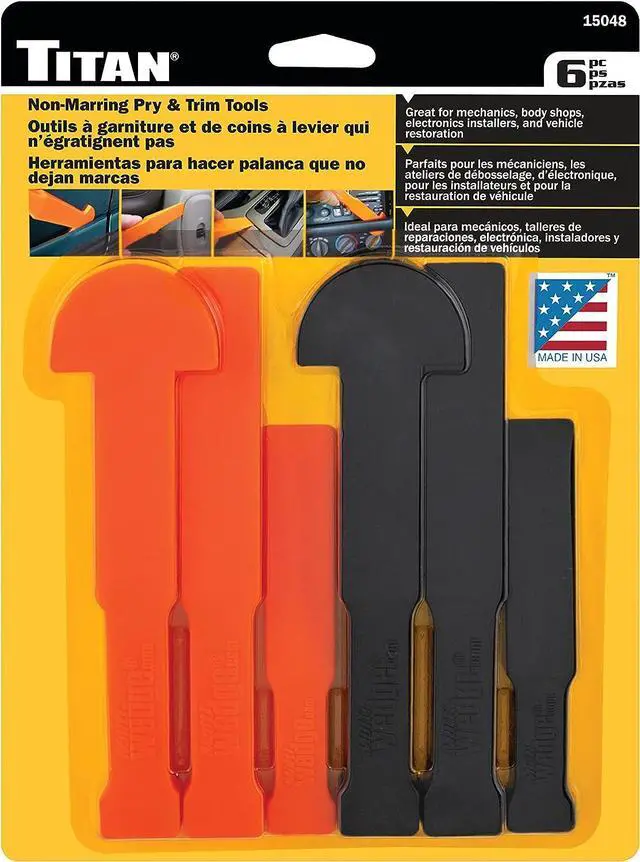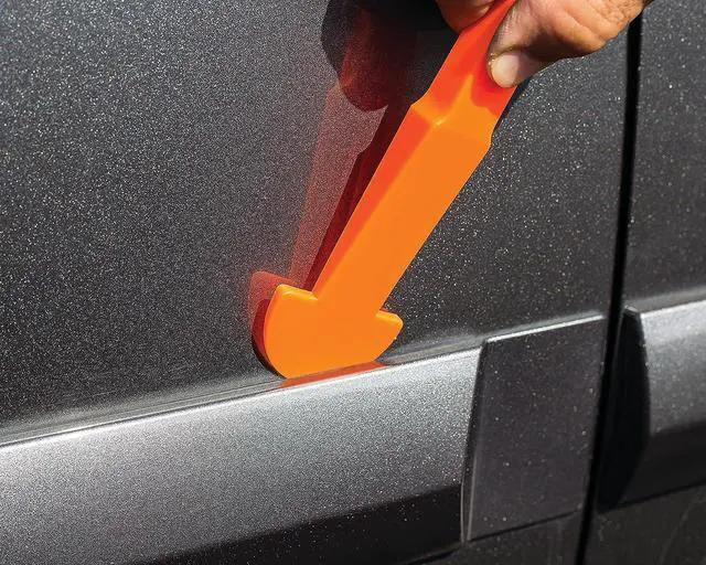 Shaped for many different applications such as removing dashboards, air vents, door panels, door locks, electronic seat controls, seat levers, center consoles, gear shifter and more
