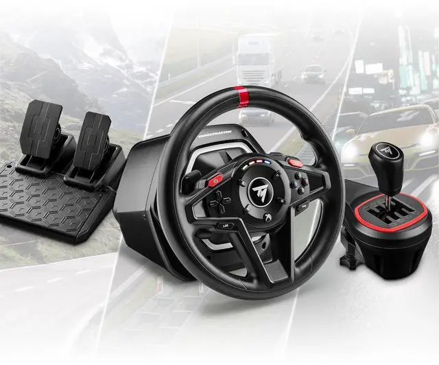 1. Versatile pack including T128 racing wheel, T2PM pedal set and TH8S Shifter Add-On shifter
