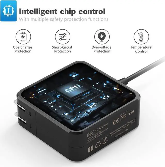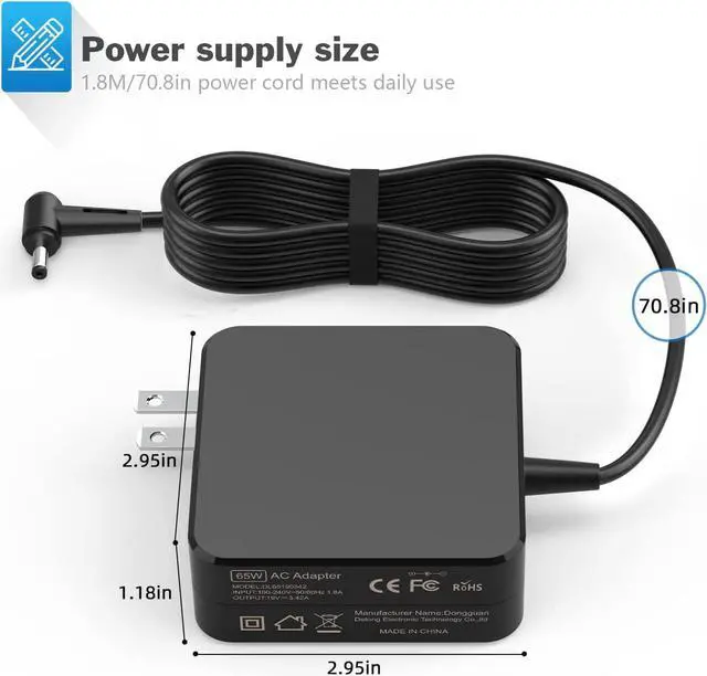 Input: 100-240v 50-60Hz, Output: 19V 3.42A, 65W