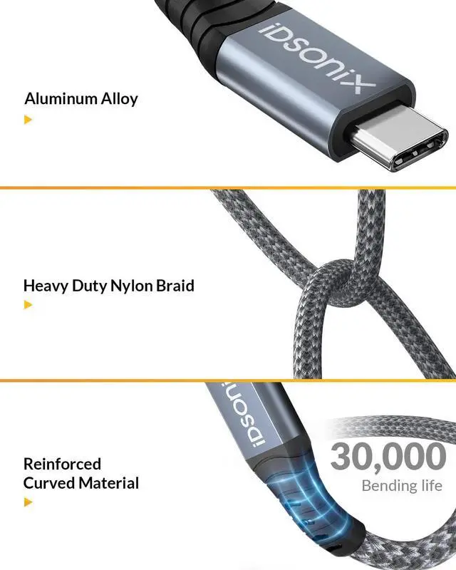 Stable & High-Speed Charging iDsonix USB4 cable with 100W (20V/5A) supports PD 3.0 /QC 3.0 power delivery, support up to 100W charging. Designed for laptop charging with USB C port, greatly solve the problem of slow charging when your Macbook is thirsty for power. (Note: Charging speed may depend on the devices charging capability).
