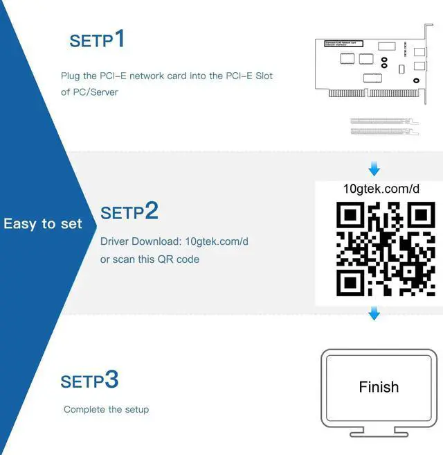 Easy to install: Scan the QR code on the network card to download the driver immediately. Packed with BOTH Low Profile Bracket and Full-height Bracket that support on Standard and Slim computer/server.