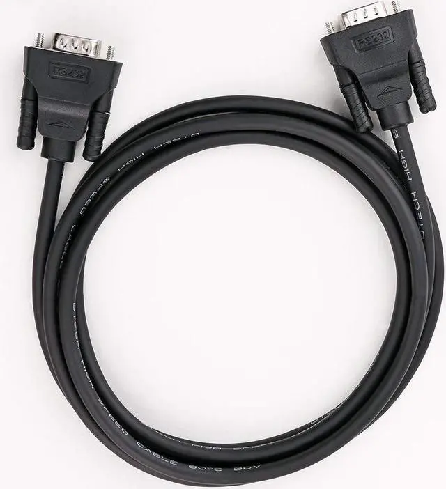 Serial cable male to male DB9 connector on each end equipped with screws to ensure an easy and solid connection for stable data communication