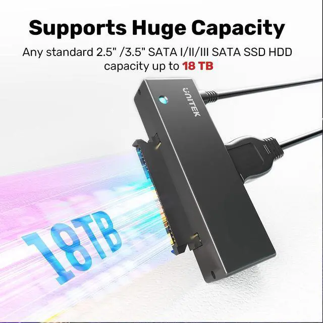 Universal Hard Drive Adapter: Supports any standard 2.5 " / 3.5 " SATA I/II/III SATA SSD HDD capacity up to 18 TB, BLU-RAY DVD, CD-ROM, DVD-ROM, CD-RW, DVD-RW, DVD+RW Combo devices, can be used on Windows XP/Vista/7/8/10 and Mac OS.
