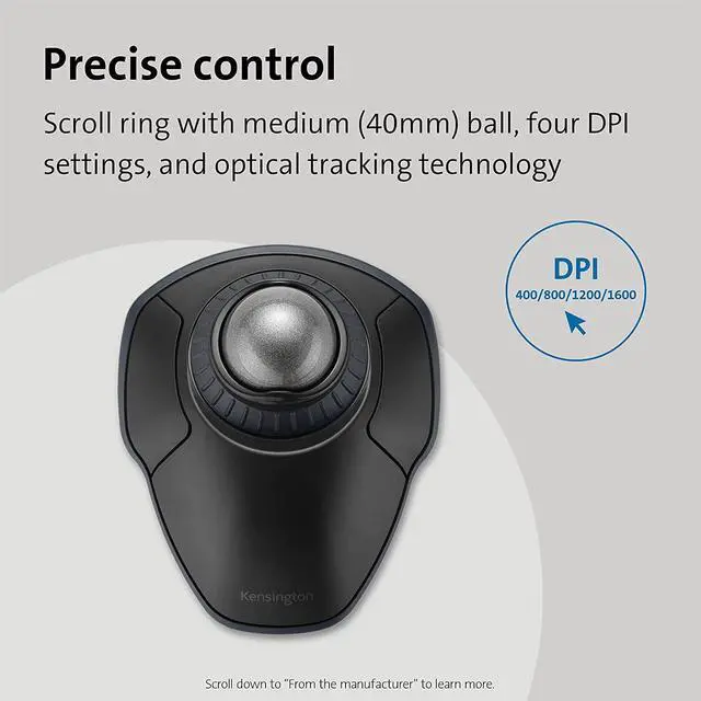 The scroll ring lets you spin the dial to move up and down web pages or documents with complete ease. And the 40mm balls hard surface is specially designed as a perfect sphere for precise tracking and control