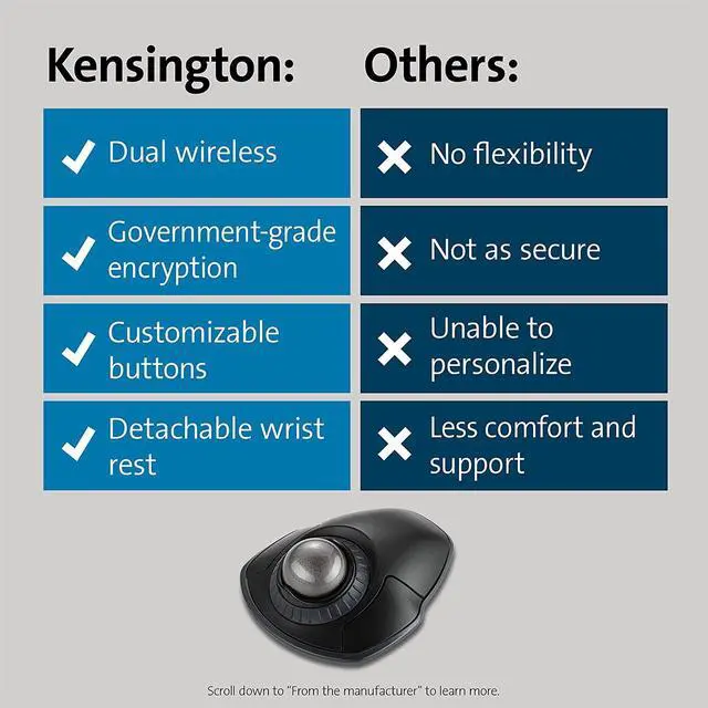 Free KensingtonWorks downloadable software provides a personalized experience, giving you the ability to assign a variety of functions (including shortcuts) to the buttons, and adjust cursor and scrolling speed