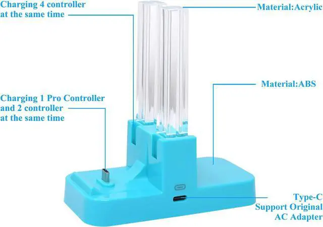 • MULTIFUNCTION - Can charging for 4 controllers for joycon or 1 Pro Controller and for 2 controllers for joycon at the same time. You can also charger for OLED Joy Con (No include Switch, controller for Joycons and Pro Controller)