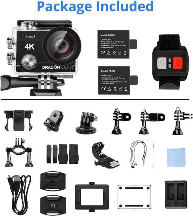 Versatile & Compact: Dragon Touch 4k action camera features multiple functions including driving mode, image rotation, time-lapse, burst photo, loop recording, slow motion, dramashot, white balance, etc. Bringing this camera to more applicable conditions beyond your expectation.
