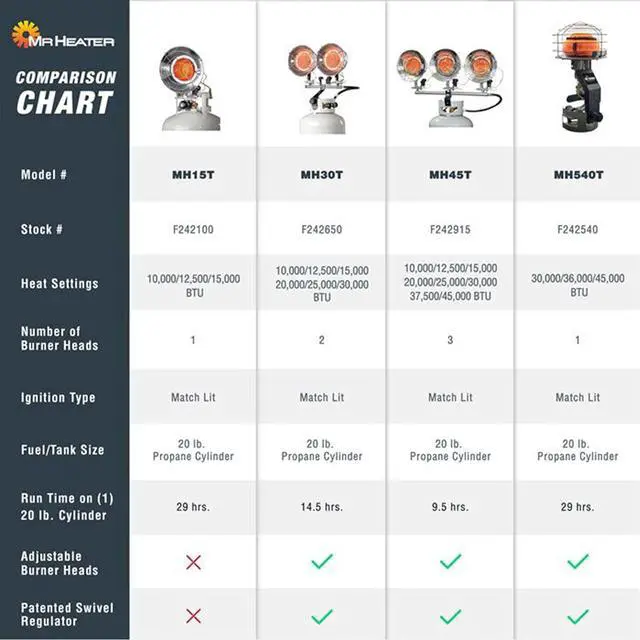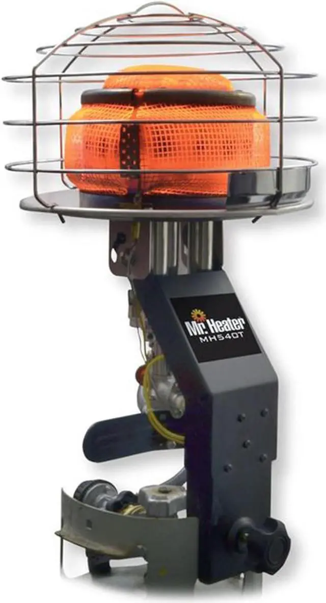 Multi-directional radiant propane heater mounts directly to a 20 lb tank for easy portability