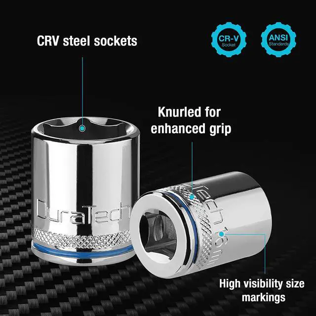 CR-V STEEL FOR DURABILITY: All 3/8 drive sockets are forged from hardened chrome vanadium (Cr-V) steel, then heat treated, polished, corrosion-resistant chrome plated finish for maximum strength and durability.