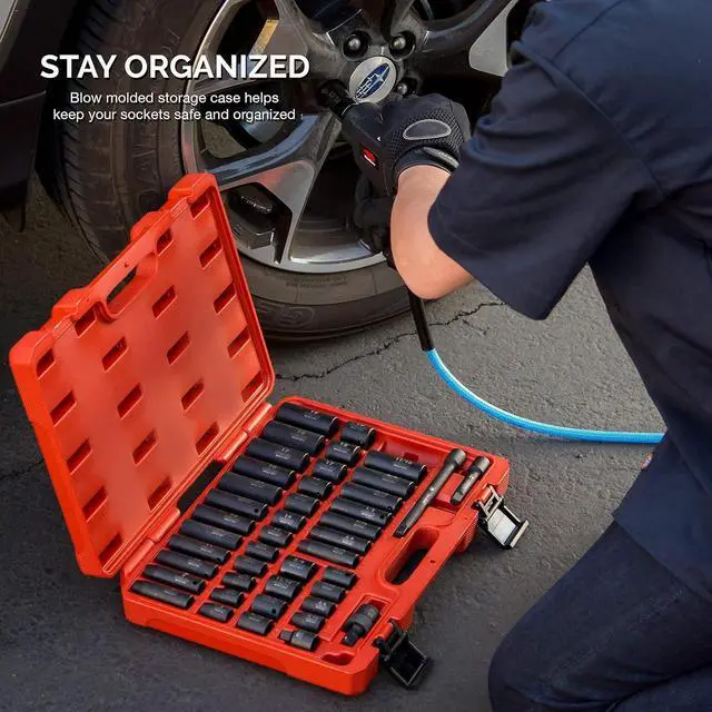 6-POINT HEX DESIGN: The 6-point hex socket design prevents round off on fasteners under high torque exertion from high-impact or electric wrench output. The included socket set case holds each socket for easy transport and storage.