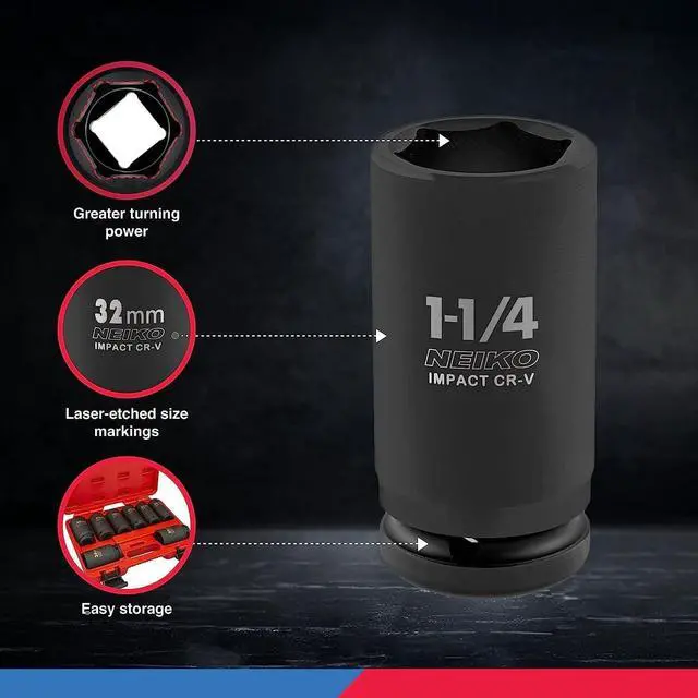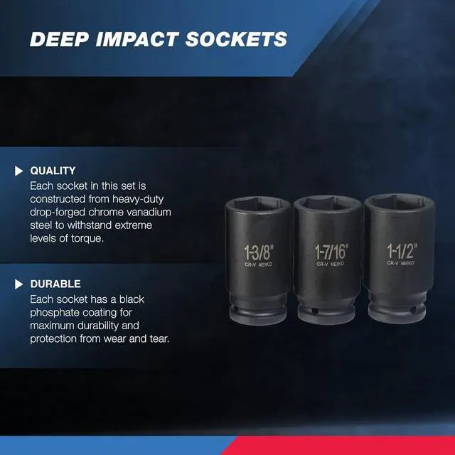 SPECIAL DEEP DESIGN: Each socket has a unique design that grips the flat sides of fasteners rather than the corners to prevent stripping and rounding off of bolts. With a high torque impact gun, each standard socket will torque the most stubborn fasteners.
