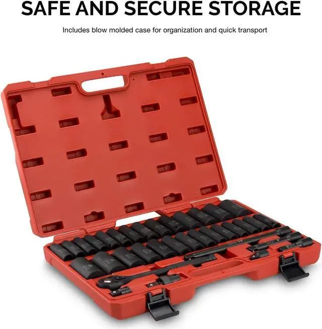 MASTER SOCKET SET: This complete set comes with the following pieces: (28) 1/2-inch drive sockets