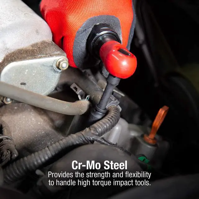 CR-MO STEEL: Provides the strength and flexibility to handle high torque impact tools.