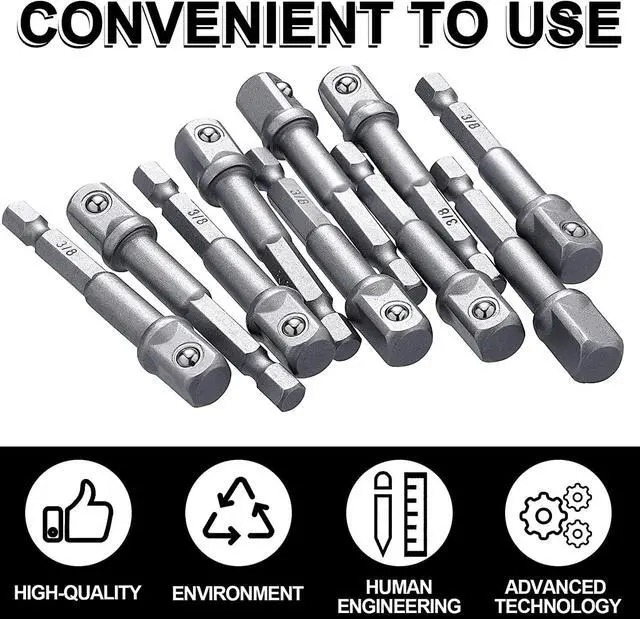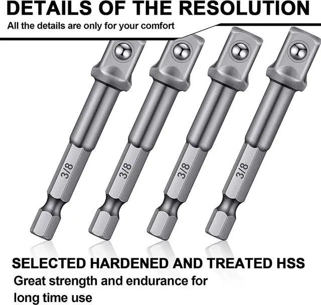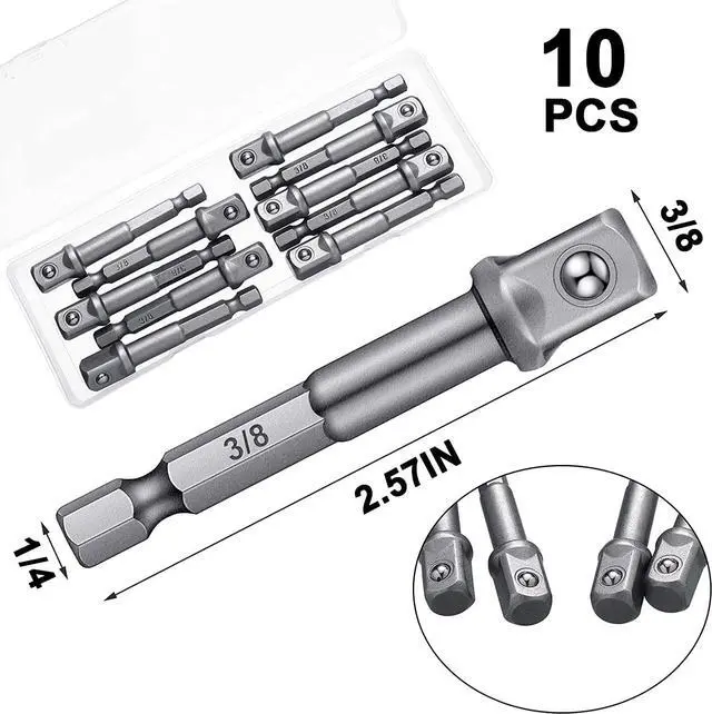 Material: featuring quenched high speed steel material, the socket bit adapter is sturdy, smooth, with high strength, and can be applied for a long time; The size of the square tip is about 10 mm/ 3/8 inch, and the size of the hexagonal handle is about 6.3 mm/ 1/4 inch; Before placing an order, please confirm the size to avoid an unpleasant shopping experience