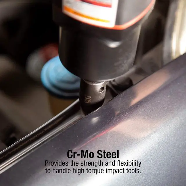 CR-MO STEEL: Provides the strength and flexibility to handle high torque impact tools.