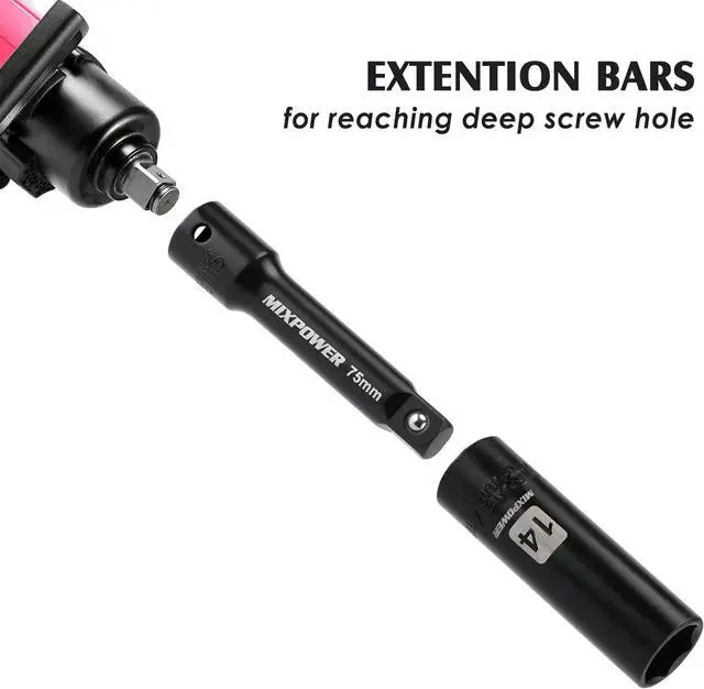 Dr. deep/shallow (METRIC): 8, 9, 10, 11, 12, 13, 14, 15, 16, 17, 18, 19, 21, 22mm.
