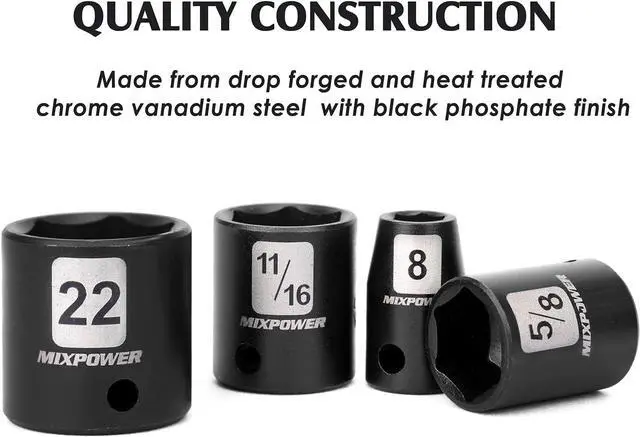 Dr. deep/shallow (SAE): 5/16, 3/8, 7/16, 1/2, 9/16, 5/8, 11/16, 3/4 inch, 3/8"