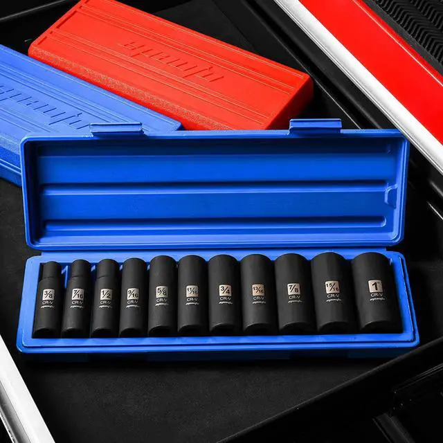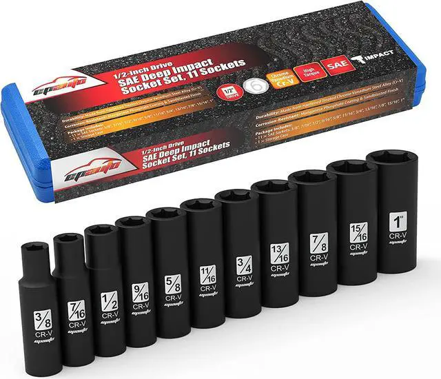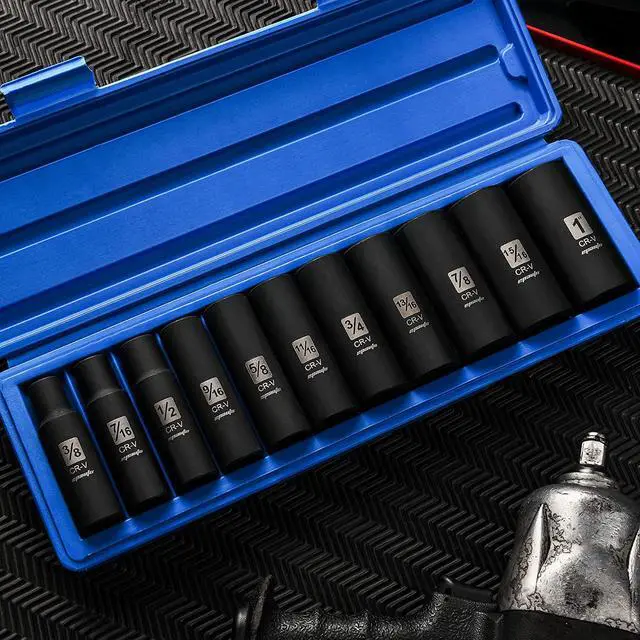 Sockets: 3/8", 7/16, 1/2", 9/16, 5/8", 11/16, 3/4", 13/16, 7/8", 15/16, 1, Drive Socket Set