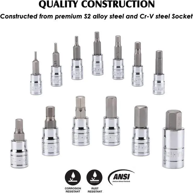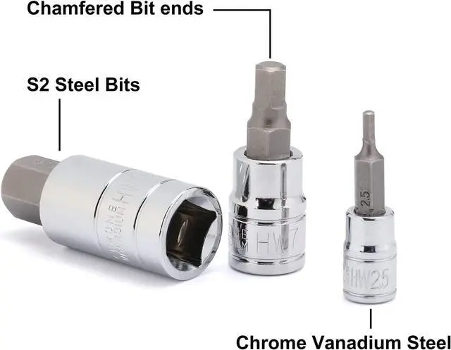 High-torqueSockets features a chrome finish and bits are made from S2 steel bits to resist rust and corrosion.