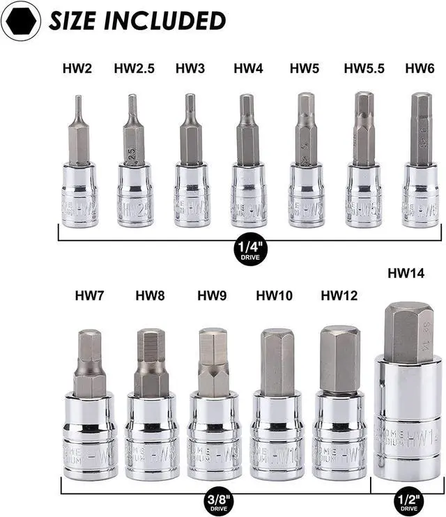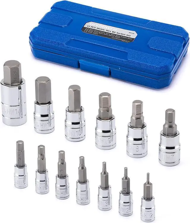 Set Include13-Piece Metric hex bit socket set includes: 1/4