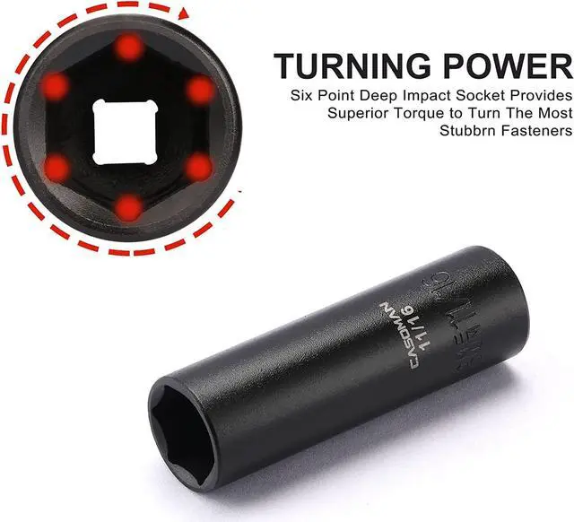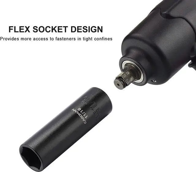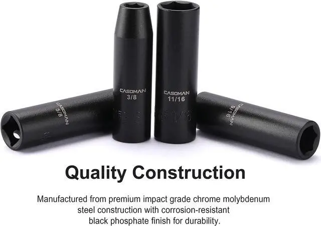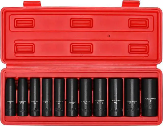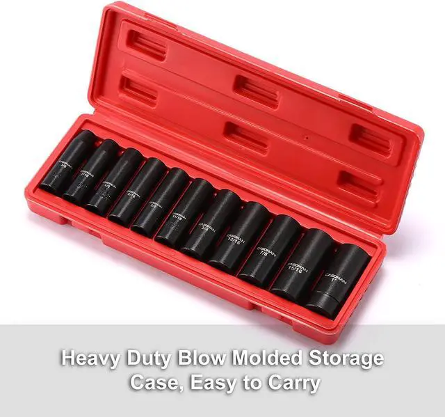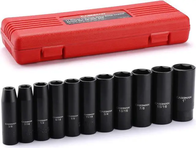 1/2-Inch drive deep impact socket set: 3/8", 7/16", 1/2", 9/16", 5/8", 11/16", 3/4", 13/16", 7/8", 15/16", 1"