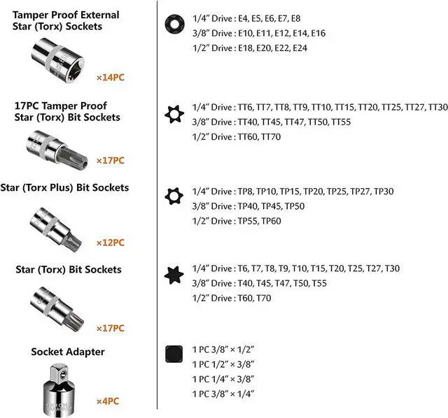 S FIRST CHOICE: A complete toolbox | Increased bit strength supports higher removal torque capability allows you to easily deal with various maintenance. Meet and exceed ANSI standards. Security and Convenience!