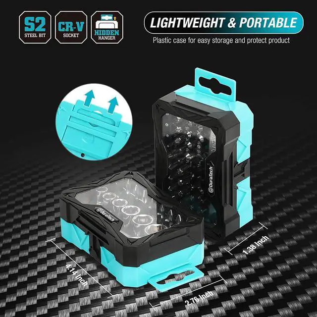 WHAT YOU GET- This 56pcs versatile set includes 2* 1/4" mini ratchet wrench, 2* bit extension bar, 9* Tamperproof Star(T8, T10, T15, T20, T25, T27, T30, T35, T40), 6* Phillips bits (PHO, PHI, PH2, PH3), 6* Slotted bits(3/16, 1/4, 5/32, 3/16, 1/4, 5/16 in. ), 4* Spanner bits, 3* Star Bits, 4* Tri-Wing Bits, 6* Hex Bits (5/64, 3/32, 7/64, 1/8, 9/64, 5/32-in. ), 4* Pozi bits (PZO, PZ1, PZ2, PZ3), 3* Square bits(S1, S2, S3), 1* Adapter and 6* Sockets(1/4, 9/32, 5/16, 3/8, 7/16, 12-in).