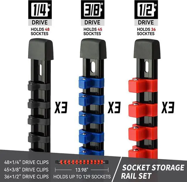 Easy to Organize: Effortlessly manage your tools with this socket organizer. It can be easily organized in your toolbox, mounted on a wall vertically or horizontally, placed on your workbench or stored in a drawer.