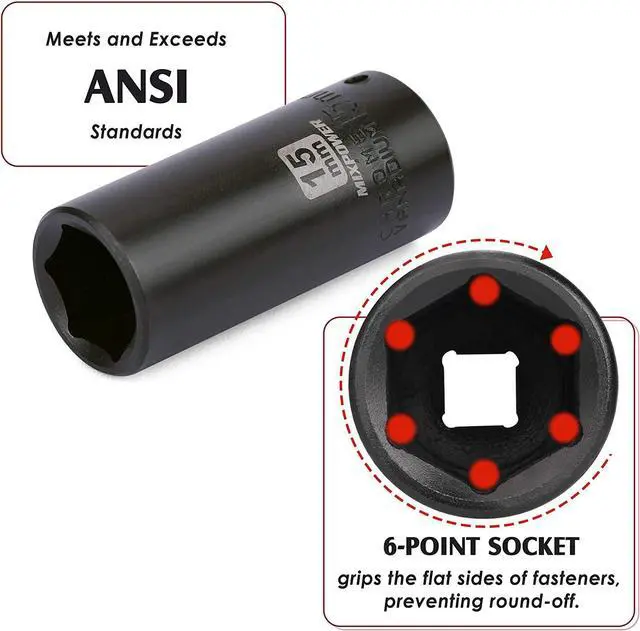 High-torqueRadius corner, 6-point drive design turns the flat sides of the fastener and provide maximum torque, while not peeling and damaging the corners.