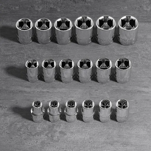 Sizes included: 10, 11, 12, 13, 14, 15, 16, 17, 18, 19, 20, 21, 22, 23, 24, 25, 26, 27 mm. Every unit is meticulously inspected for a consistent chrome-plated finish to ensure maximum corrosion resistance, meaning that these sockets are truly made to last a lifetime. "
