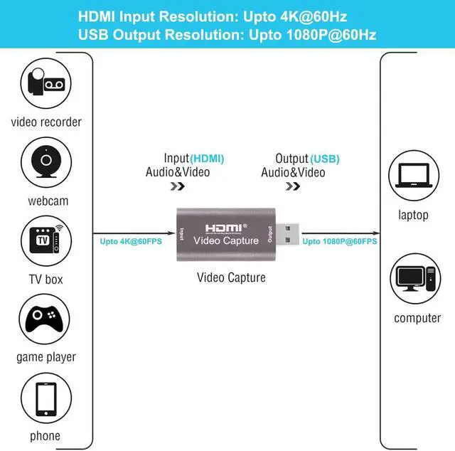 • Perfect capture card- Video capture card support input resolution 4K 60Hz, output resolution 1080P 30Hz.