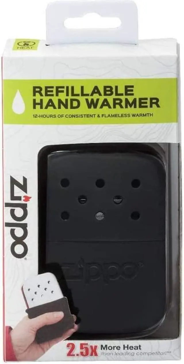 Includes easy fill technology Improved fill cup helps reduce spills Perfect for all cold weather activities Flameless gentle warmth Sleek, thin design fits into the smallest pockets