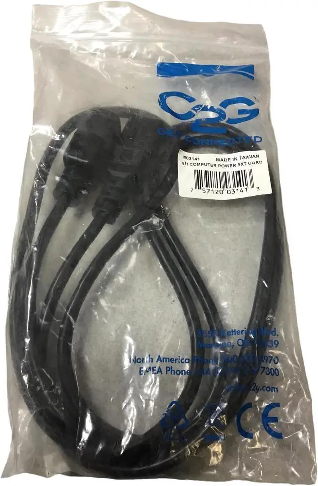 Package Includes: C2G #03141 6ft 18 AWG Computer Power Extension Cord (IEC320C14 to IEC320C13)