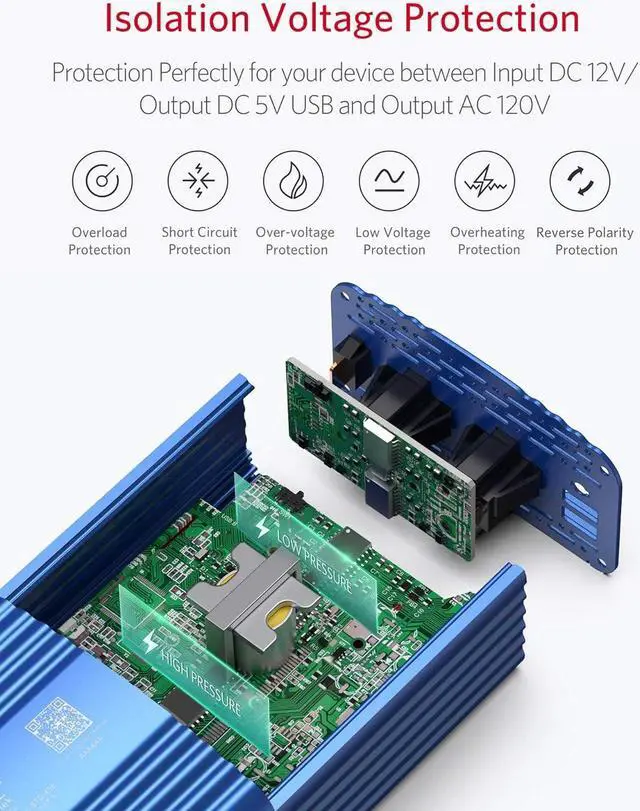 The Sine Wave Inverter has well placed thermal protection sensors, The aluminum alloy casing with a few ripples, Unique vents and also a built-in FAN which comes ON under NO any loads or when the Inverter becomes Hot Once Powerred. It has 2 x 40 amp/32V external replaceable fuse for protection when hooked up to your battery, readily accessible/replaceable from the back of the Inverter; when hooked to cigarette lighter it will use 15 amp fuse designated to your car.