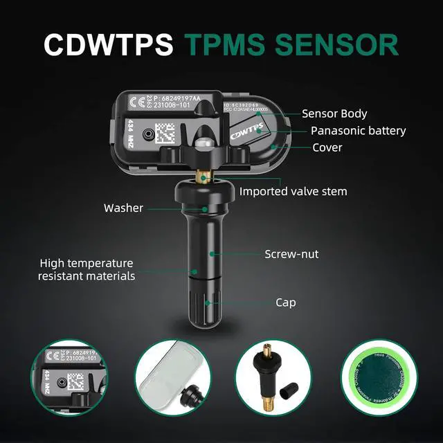 CDWTPS is a professional tpms sensor maker. Have professional&experienced R&D engineering team, Rigorous and controlled manufacture process and excellent quality system dedicated to provide innovation solutions & high quality products for OEM and automotive after market.