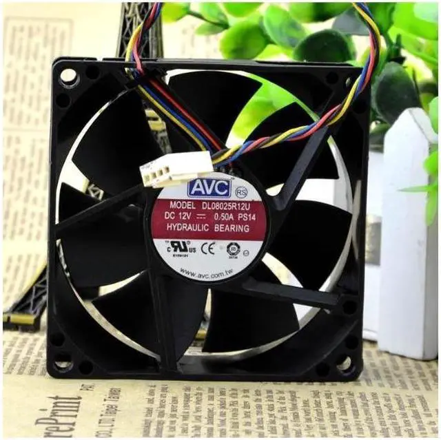 • AVC 8025 80mm x 80mm x 25mm DL08025R12U Hydraulic Bearing PWM Cooler Cooling Fan 12V 0.50A 4Wire 4Pin Connector