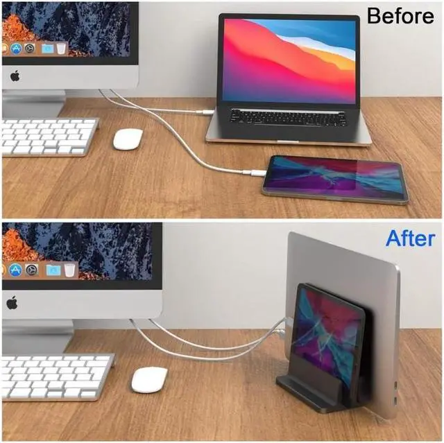 :Optimize Desktop Space - Double dock stand capable of supporting two laptops simultaneously,Connect an external monitor, keyboard and mouse to your laptop, then dock your laptop or Macbook (use closed-clamshell mode for Macbooks) to save valuable desk space and to protect your device from spills