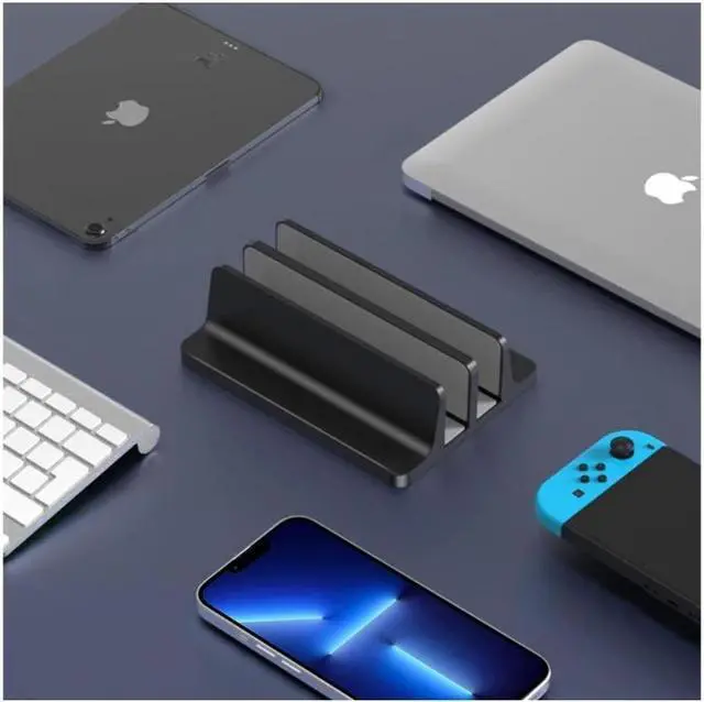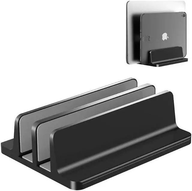 Vertical Laptop Stand Holder, Desktop Aluminum MacBook Stand with Adjustable Dock Size(2 Slots), Fits All MacBook, Surface, Chromebook and Gaming Laptops (Black)